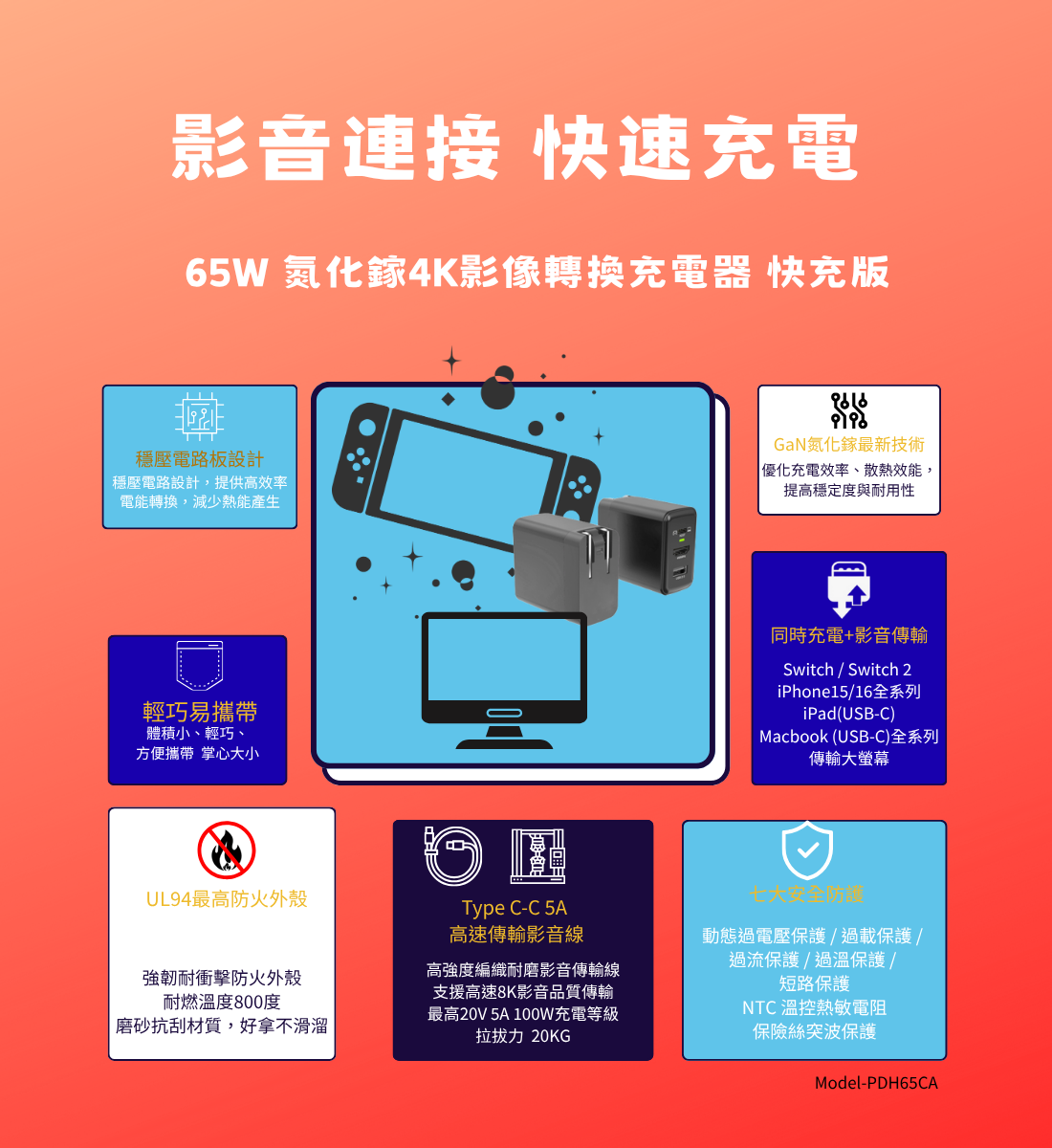 65W GaN 4K影像轉換充電器